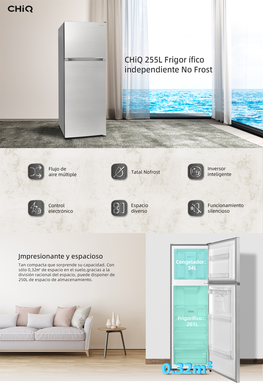 Capacidad total útil:255L